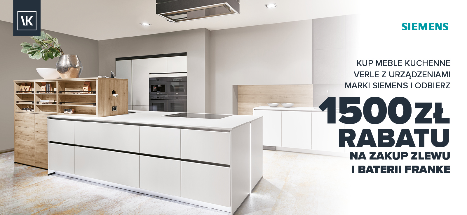 W salonach Verle Küchen trwa promocja, w której premiowany jest zakup mebli kuchennych wraz z urządzeniami Siemens. Przy zamówieniu takiego zestawu możemy odebrać aż 1500 zł rabatu na zlewozmywaki i baterie marki Franke. Jeżeli więc w najbliższym czasie planujesz remont kuchni albo też marzysz o stylowej kuchni w swoim nowym domu, to najlepszy czas, by udać się do studia Verle Küchen i skorzystać podwójnie.
