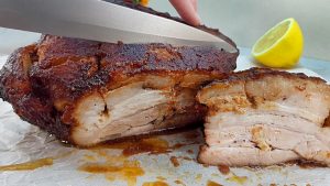 Po upływie dwóch godzin mięso wyciągamy z piekarnika oraz z folii, smarujemy je z obu stron marynatą. Dla lepszego efektu można mięso dodatkowo położyć na grillu, na 220 stopniach i piec przez następne 10-15 minut.