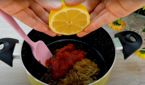 Przygotowanie marynaty zaczynamy od umycia jabłka i roztarcia go na tarce, na średnich oczkach. Mieszamy go z sosem sojowym, sokiem z cytryny oraz koncentratem pomidorowym. Na koniec do całości dodajemy cukier, cynamon, paprykę mieloną. Całość dokładnie ze sobą mieszamy. Składniki wymieszane ze sobą należy przełożyć do garnka i gotować je na delikatnym ogniu, aż utworzy się gładka masa.