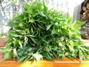 - 5 pełnych łyżek drobno posiekanych liści pokrzywy – suszonej lub świeżej,