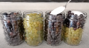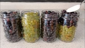 Starannie umyj winogrona. Przygotuj słoiki i wypełnij je winogronami.
