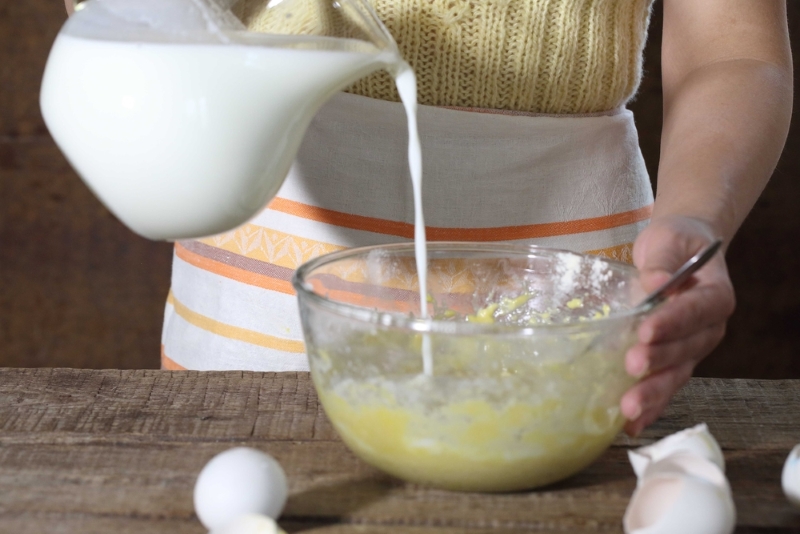 Roztrzep 5 jaj i dodaj cukier a następnie stopniowo dodawaj mąkę ziemniaczaną. Mieszaj do momentu, aż nie będzie grudek.