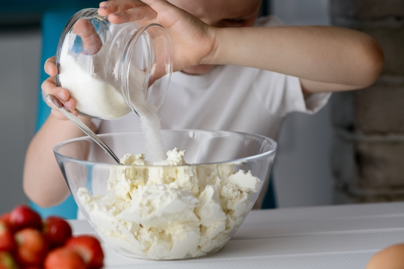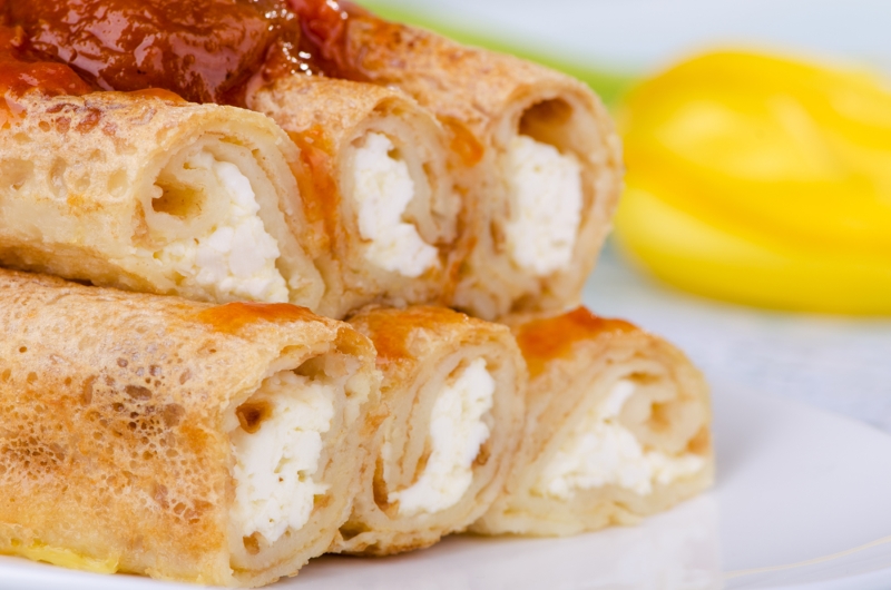 Przygotowane naleśniki połóż na blaszce i posmaruj je śmietaną bądź jogurtem naturalnym.
