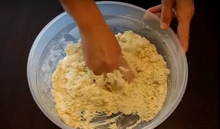 Do jednej miski przesiewamy mąkę. Dodajemy cukier, sól i mieszamy. Do drugiej wkładamy miękką margarynę/masło, wsypujemy zawartość pierwszej miski i dodajemy kwaśną śmietanę, która powinna mieć temperaturę pokojową. Wszystko ze sobą mieszamy.