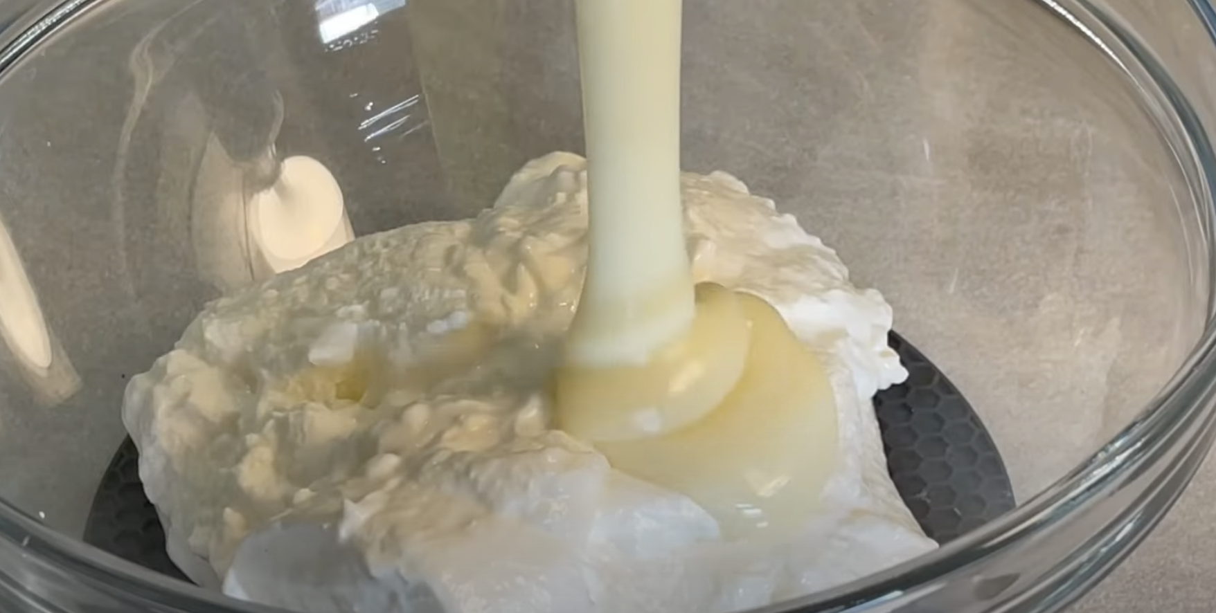 Przygotuj krem: W misce wymieszaj śmietanę i skondensowane słodzone mleko.