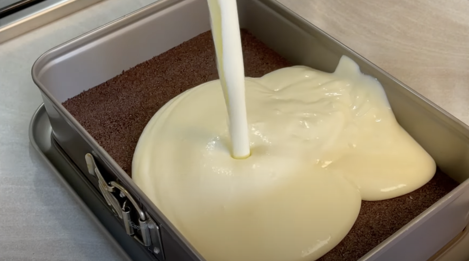 Posyp okruszkami wierzch deseru, wstaw do lodówki do zestalenia. Gotowe.
