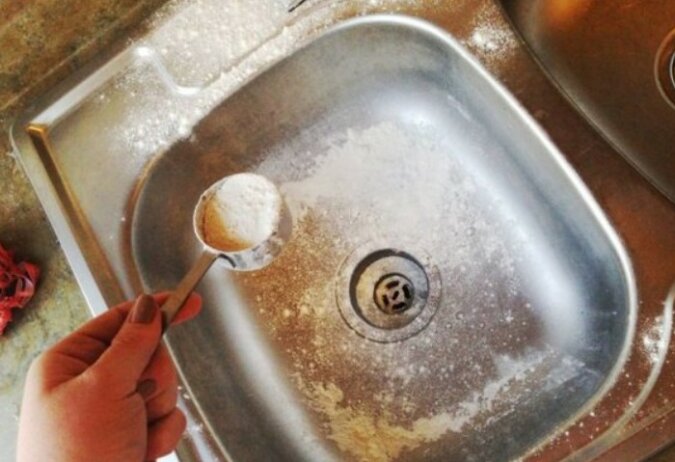 Ważna uwaga! W zlewach ze stali nierdzewnej polerowanie odbywa się w określonym kierunku. Pocieranie powierzchni mąką wzdłuż odpowiednich linii zmniejszy prawdopodobieństwo uszkodzenia zlewu. Za pomocą szczoteczki do zębów wyczyść problematyczne obszary w pobliżu kranu i odpływu