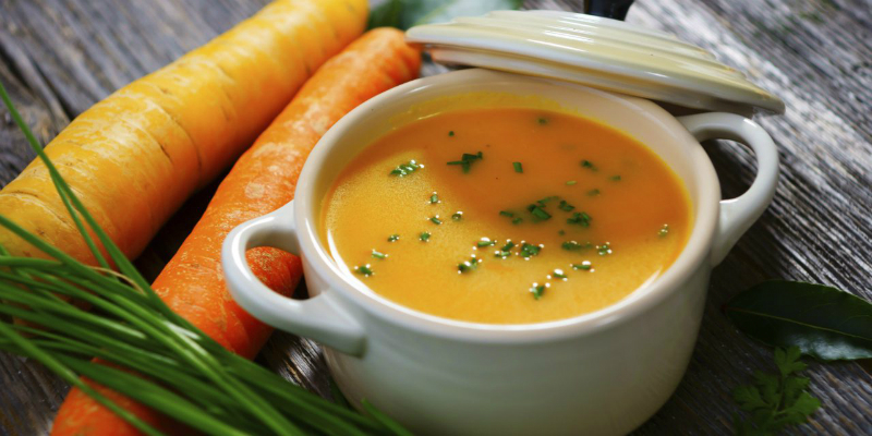 Dzień 350 g kremu z marchwi i 50 g gotowanej piersi z kurczaka.